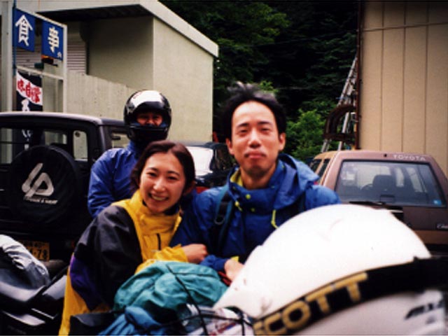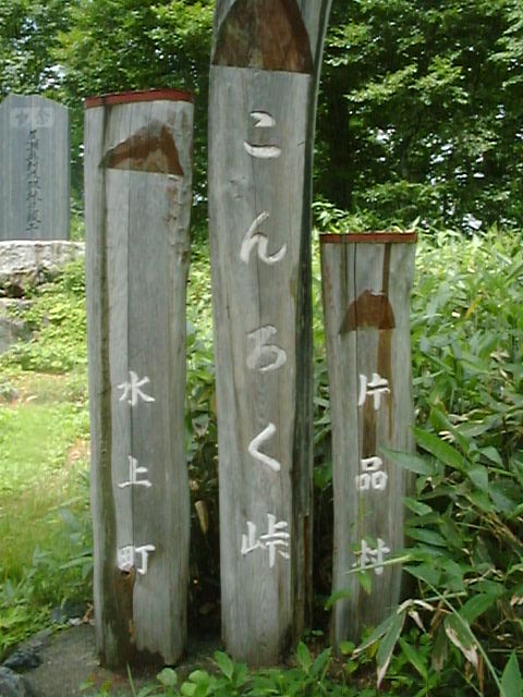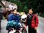 頂上?みたいな所でちょっと休憩。皆カッパ脱いでるが、 わしとkのoff車乗りはかっぱ脱げない。なぜなら、まだ道路は濡れて いて、前輪の跳ねでスネがビチョ濡れなのである。 記念写真撮って出発。