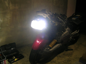 Hi時の右側があまりにも黄色くなってしまったので、右側にも見かけ倒しの5000kを入れました。そしたら今度は今まで一番白かったポジションランプが黄色い・・・・