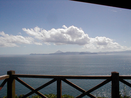 鹿児島湾越しに薩摩半島を望む。