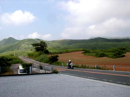 mapfanの地図には載ってない新しい広域農道「四季彩ロード」を抜けて大分県道11「やまなみハイウェイ」に抜ける。やまなみハイウェイは休日は車で混んでちーとも快適でないので避けたかったが、いざとなると他に道が無い。