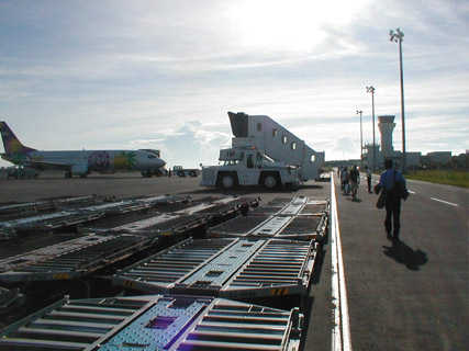 外出て飛行機まで歩く。