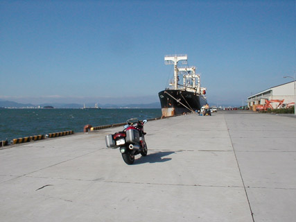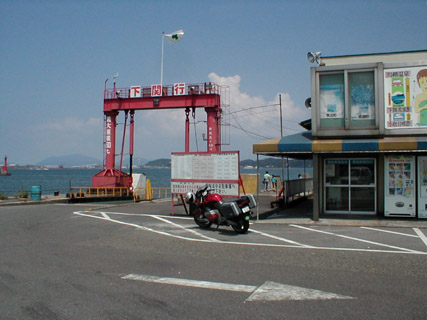 全然違うのは海峡の交通量。大型貨物船から小型船まで、列を成して通ってる。船尾の旗を見ても国籍も様々。神戸や横浜なんかから中国方面へ行く船はみんな通るんだよね。その船の間を縫う様に海峡を渡り、ほどなく下関の福浦港に到着。