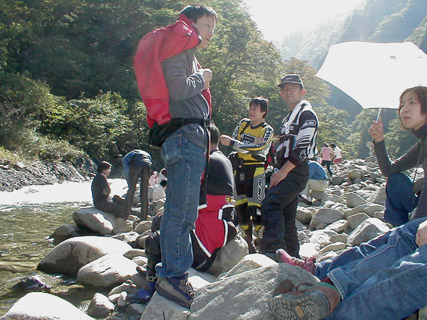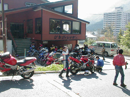 本隊はR17を苗場に登る途中で温泉へ。一部走りたい組は苗場の先の三国スキー場の方へ紅葉を愛でに行った模様。