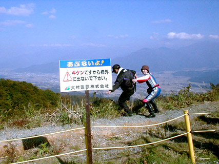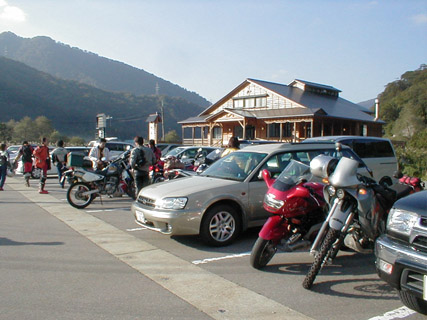 駐車場に戻るとライダーが一人柵に座っている。奥にZZR1200。西出さんではないですか。