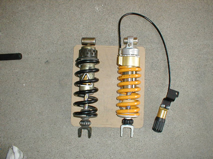 左が純正。右がOHLINS。なんて説明もいらんすな。