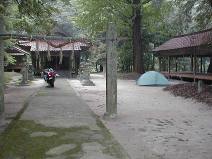 おばちゃん達には、火も何も使わない。一晩寝るだけと告げて侵入。公園は閉まっちゃってるけど、神社はその脇から細道を入って行ったとこにあって、出入りが制限される状態じゃない。
