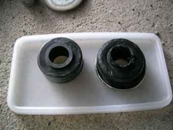 ブッシュはフレームを挟むように2つ使われているのですが、前側に付いている方が圧倒的にヘタります。構造的に制動を受ける側ですな。