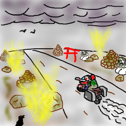 なんかこう、いつもそこだけどんよりとして、ガラガラシューシューな荒野原にイタコが無造作に佇み、祈りを捧げてる。イタコは毎日麓の村から出勤してくるのです。