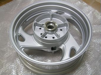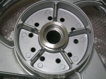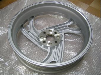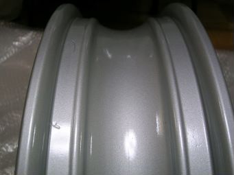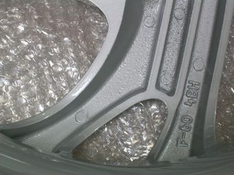 まあ綺麗にできましたよ。塗膜は思ったより分厚くて、キャストの梨地は結構埋まってしまっている感じ。想像したサラッと感は無くてややボテ感。普通にカー用品屋で売ってるシルバーなペイントのアルミホイール的質感です。