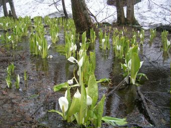 でもその道端でミズバショウを発見。