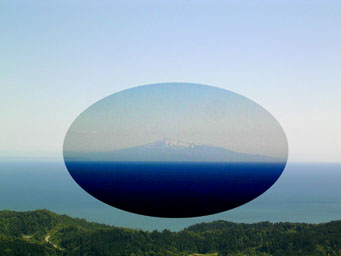 日本海、男鹿半島の先の方、白神山地、そして足元に八郎潟。