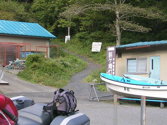 20マップルにも確かに「灯台まで徒歩4km」って書いてあるんです。でも地図上では2kmくらいにしか見えないので、勝手に「往復で4kmかな」と解釈して臨んでました。そうは言っても徒歩じゃないと行けないような道の2kmにしろ4kmにしろ、相当なもんであることは火を見るより明らかですので、革ジャンもなにもかもパニアに突っ込んで、かなり身軽で行きましたよ。ええ。