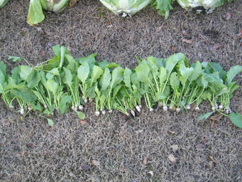 カブとも大根ともつかない大きさ、形、葉っぱ