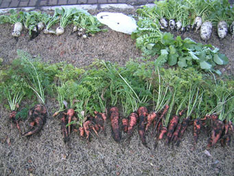 ニンジン。春から放っておいたので馬鹿でかいのもあります。