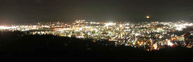 右上の方に浮いている橙色の光は雫石スキー場でつ。