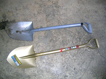 これだから中国製は・・・ブツブツ・・・  てのは半分冗談で、1000円しかしなかった割には良かったんですよこの銀色のスコップ。材質は結構良くて剣先が潰れることも歪むこともありませんでした。が、溶接が甘かったんですなあ。1000円とはいえ、勿体無いよなあ。できれば直して使いたいけど、こんなの結構大きな溶接機が無いと直せないし。ああ溶接機欲しい!(←馬鹿)