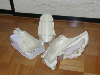 ご覧の通り、発泡ウレタンを削り出して型そのものが自立するようにできてます。
