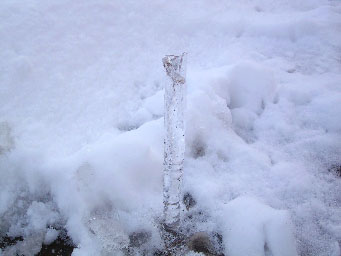 車の下にできた氷柱が地面と合体してて、車だけが居なくなってしまった名残ですが何か。