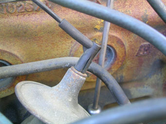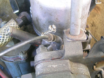 キャブのところから負圧を取ってディストリビューターのところに持って行き、ダイヤフラムを介してポイントを進角させる。そのホースがバキュームホース。