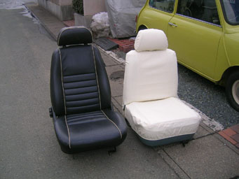別に大したことしたわけではなくて、嘔吐バクスで汎用のビニールレザー製シートカバーを買って来てちょっとサイズを詰めたりしただけですが。(やってくれたのはかみさん。thx)