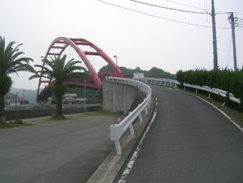 無意味事業の決定版みたいな橋。ホンの入江を跨ぐだけで迂回しても手間にはならない上、橋の先には資料館みたいのと公園しかありません。