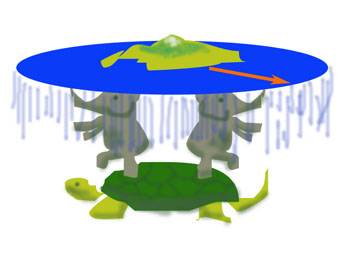 有名な概念のはずだが、キーワードが拙いのかググっても絵が見つからず自分で描く羽目になった。うろ覚えだし、象3匹描くのは大変。