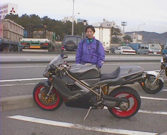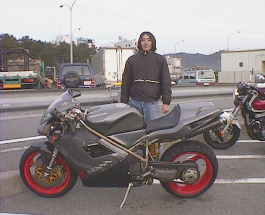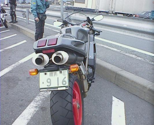 一号線とおって西湘バイパスへ。途中のパーキングエ リアにて。Ducati 916 SENNA 発見。まわり のライダーが「すげー」ってな感じで群がる。これ 250 万くらいするらしい。 お高い。 916 その2916 その3916 その4、ナンバーに注目したれ!