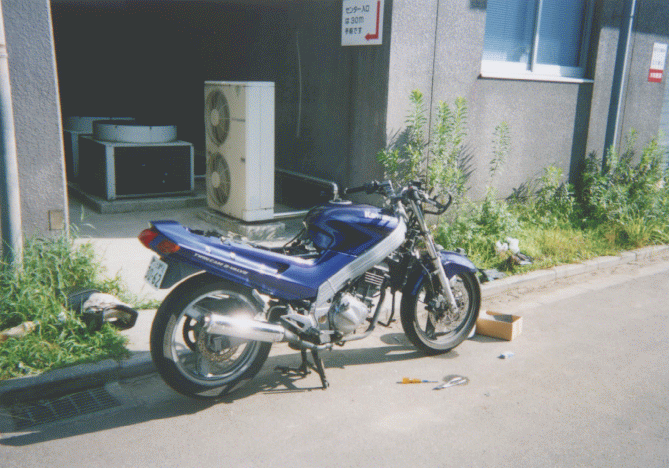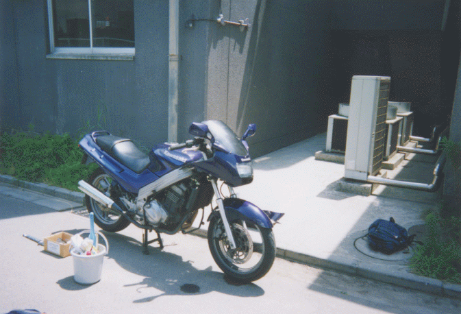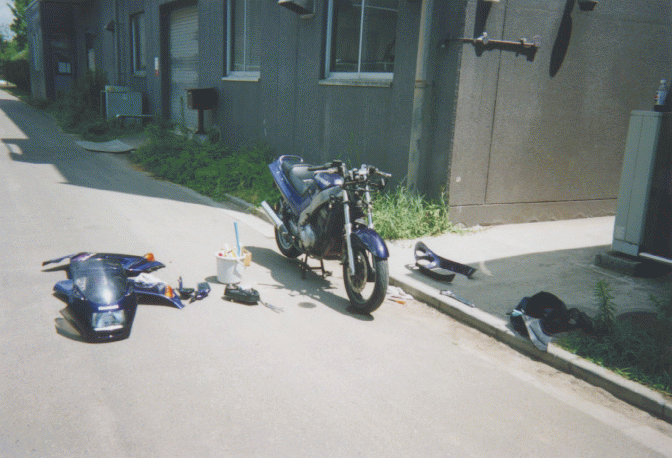 この時点で大きなサイドカウルと、アンダーカウルが外れている。
