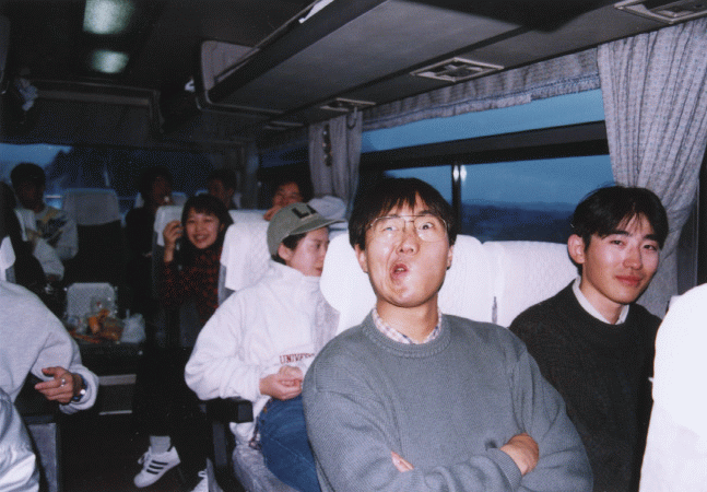 真中に居るのが、尊敬する電総研の先輩高橋さん、なかなか楽しい表情をされて います。その隣が自分。電総研スキーツアー 96 の写真でした。