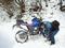 それにしても、滑べって転んでキックスタートには疲れたす。 馴れないキックに大苦労で、時には汗だくになりながら猿キック。 何度も電池切れになる。ゼィゼィ