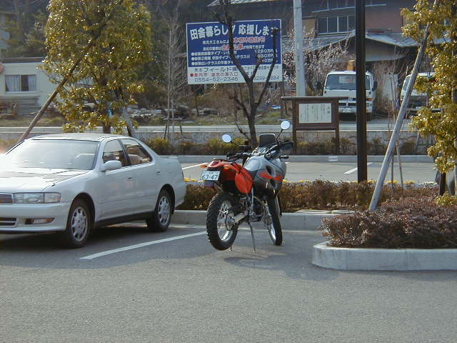 一旦家に帰り、アパートの裏に 駐車。 マニュアル類読んだりして一息してから出発。 今日は100km走って初回のオイル交換をするのだ。