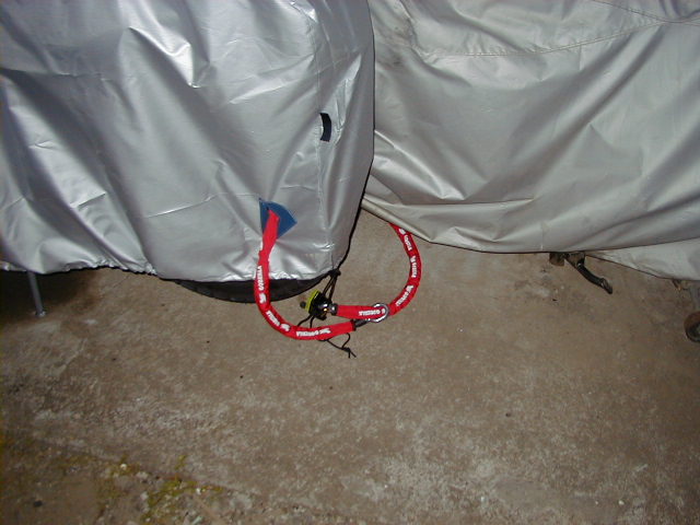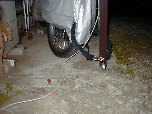 帰ってアパートの裏に駐車 し、カバーを掛けてABUSのチェーンでアパートの支柱とフロントとを ロック