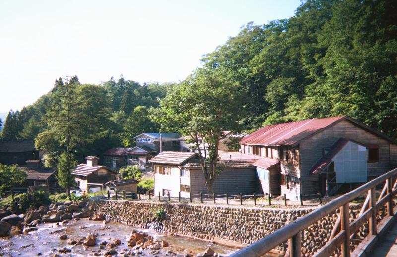 黒湯からのんびりと歩いて孫六温泉へと到着。湯治宿の雰囲気がいい。まずは 内湯へ。脱衣場はここにしかないので、まずはここで服を脱ぎ、窓から差し込 む太陽の灯だけの薄暗い建物である。電灯はあったのかわからない。足元に注 意しながら入浴。建物の外には露天が並んでいる。雰囲気的には河原の露天風 呂といった感じである。コンクリートで通路は出来ているが足元に注意した方 が良い。 最初の露天(打ち湯のすぐ下側)では学生風の男性2名とおねぇちゃん1名と混浴 となる。おねぇちゃんはタオルを巻いての入浴で大変そうだ。一番下には打た せ湯もある。すぐ横に川が流れており、手を伸ばすと川の水はとても冷たかっ た。最後にまた内湯に入る。露天からの眺めはとてもいい。 |